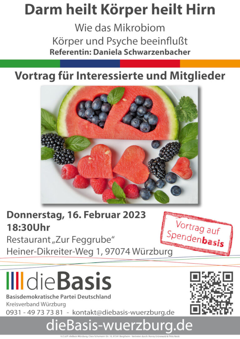 Wir laden recht herzlich zum Vortrag „Darm heilt Körper heilt Hirn – Wie das Mikrobiom Körper und Psyche beeinflusst“ ein. Referentin: Daniela Schwarzenbacher Der Eintritt ist kostenfrei. Über eine freiwillige Spende freuen wir uns sehr. Essen und Trinken kann im…